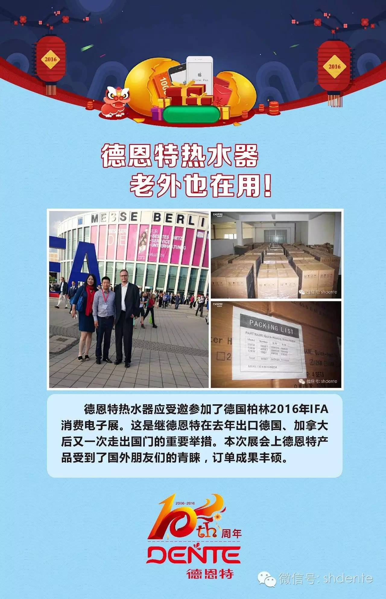 2016年11月28日~30日,由北京《現(xiàn)代家電》雜志社、現(xiàn)代家電網(wǎng)聯(lián)合主辦的第六屆中國(guó)家電營(yíng)銷年會(huì),在杭州蕭山開元名都大酒店隆重召開。來(lái)自全國(guó)各地家電行業(yè)有份量的制造商、代理商、零售商以及服務(wù)商等近一千名各路精英聚集現(xiàn)場(chǎng)。德恩特?zé)崴鳌羲畽C(jī)和電熱水龍頭,應(yīng)邀參加了本次會(huì)議。