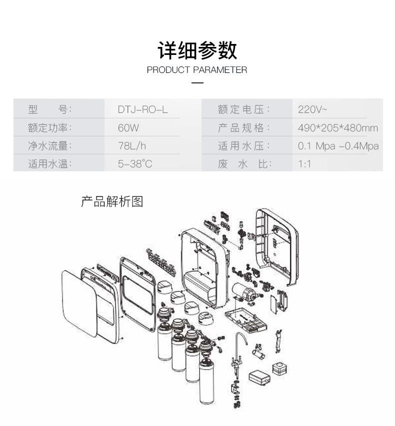 德恩特DTJ-RO-L 反滲透濾芯直飲凈水機